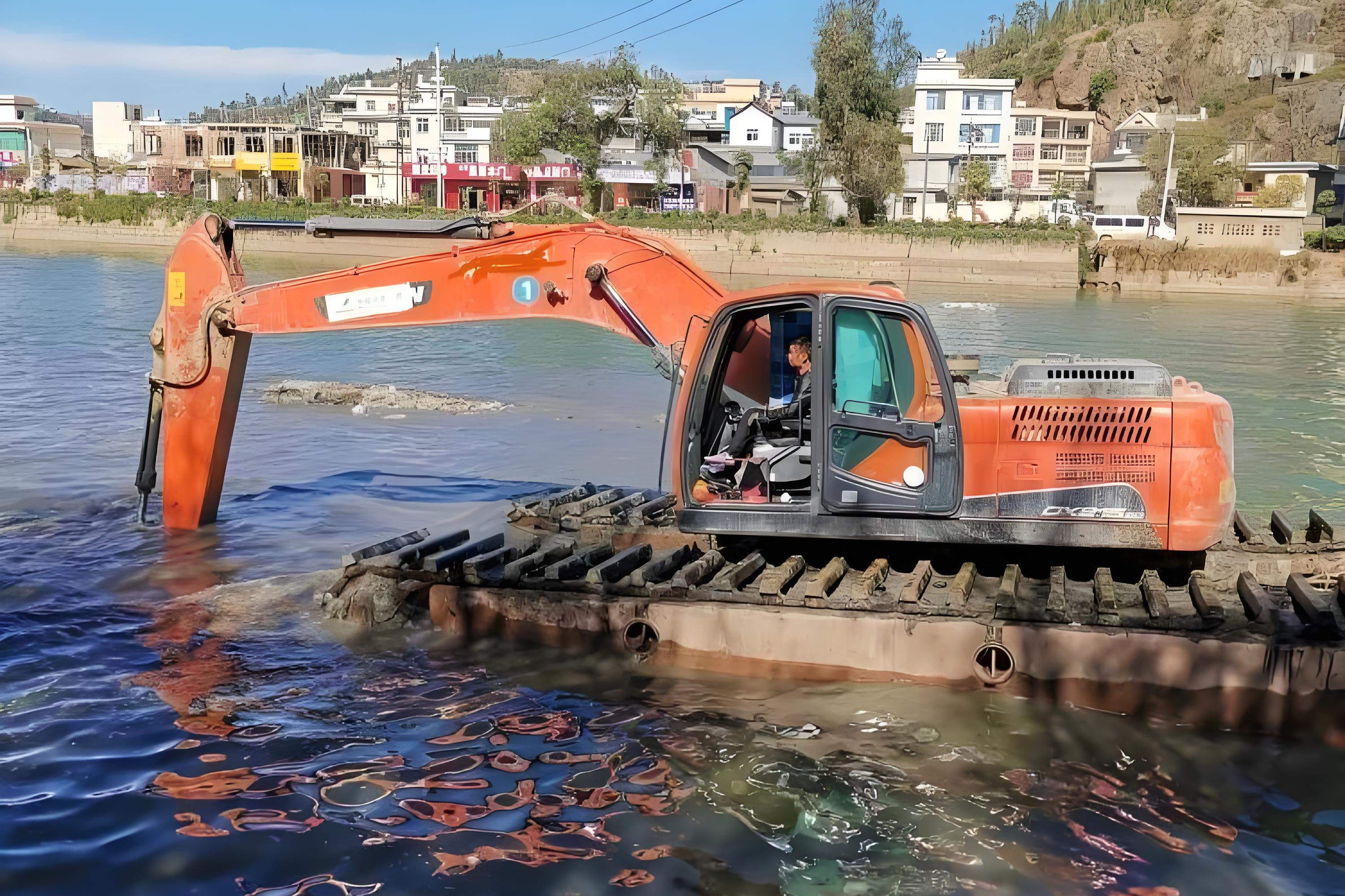 2. 兩棲式水上挖機:最低水深 0.3 米,適合淺水域